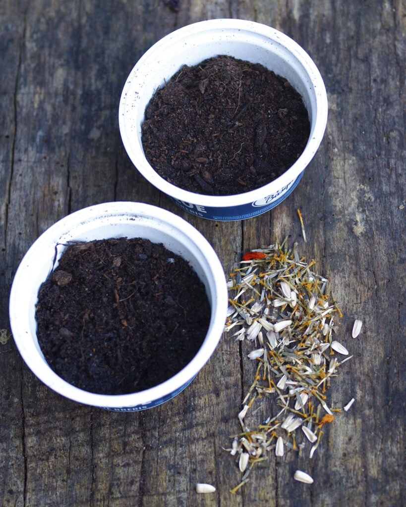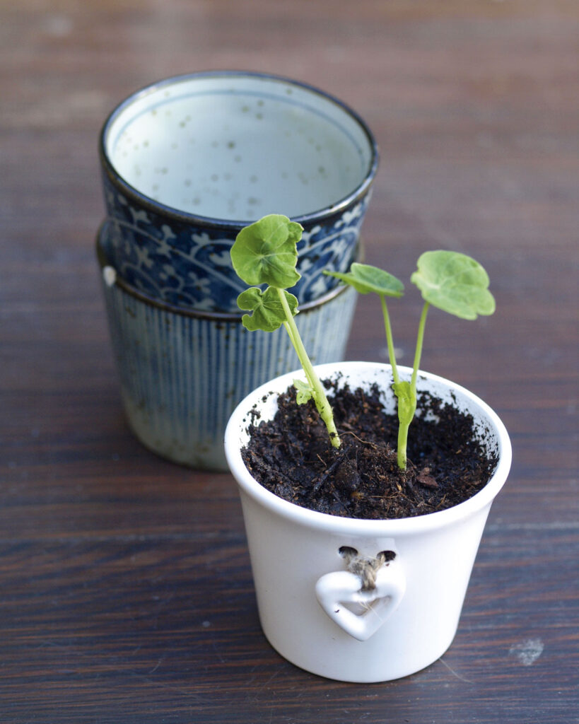 Kylvöalustaksi sopivat myös kipot ja kupit. Pieni halkeama ei haittaa ollenkaan, ja korvattomat kahvikupit saadaan takaisin käyttöön. Kivoja kippoja ja kuppeja voi toki hankkia pelkästään taimikasvatusta varten, vaikka sitten kirpputorilta tai kakkoslaatuisena.