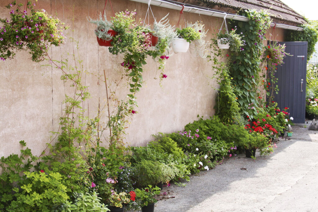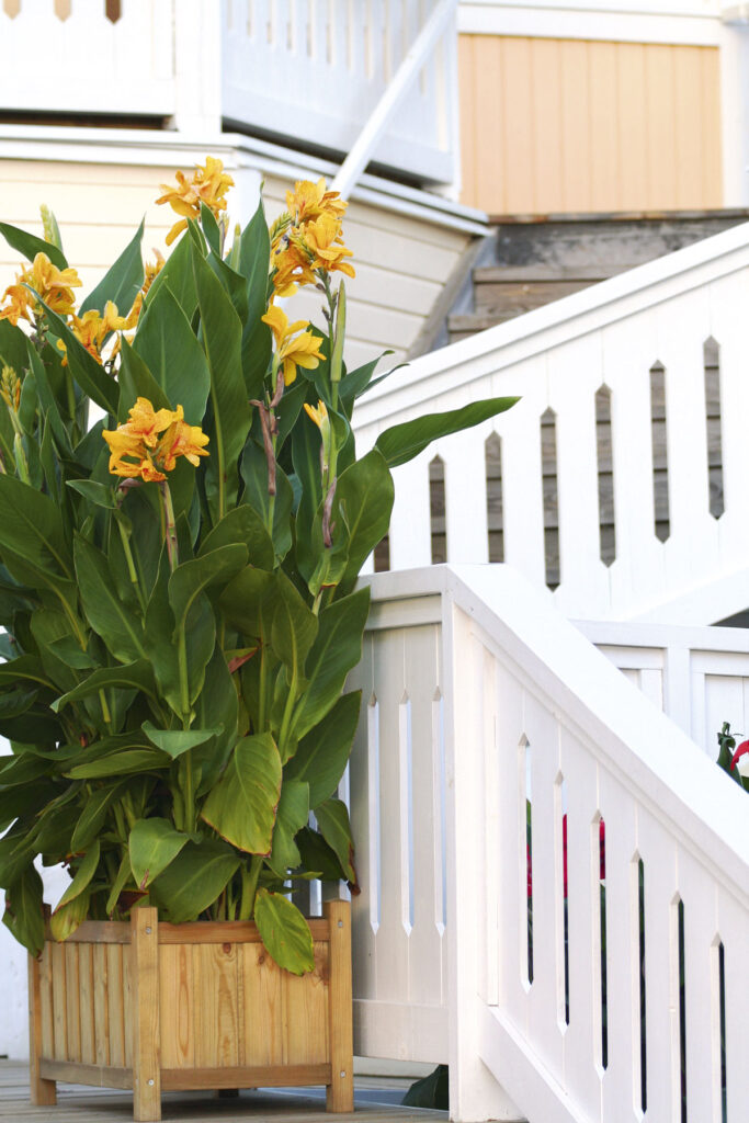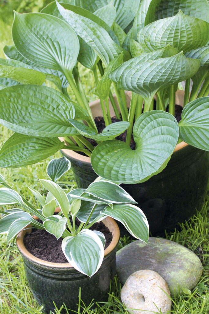 12. Raikas lobelia (Lobelia erinus) kukoistaa räystään alla sateensuojassa. 13. Nostalginen ja ylväs kanna (Canna × generalis) toivottaa vieraat tervetulleeksi. 14. Monivuotiset kasvit tuovat ruukkuistutuksiin tyyliä ja muhkeutta. Jo muutamasta kuunliljasta (Hosta) syntyy harmoninen ruukkutarha.15. Ruukkutarhan hoidossa hyvä multaseos on kaiken A ja O. Hyvä niksi on lisätä laadukkaaseen kasvatusmultaan kolmannes hiekkaa.