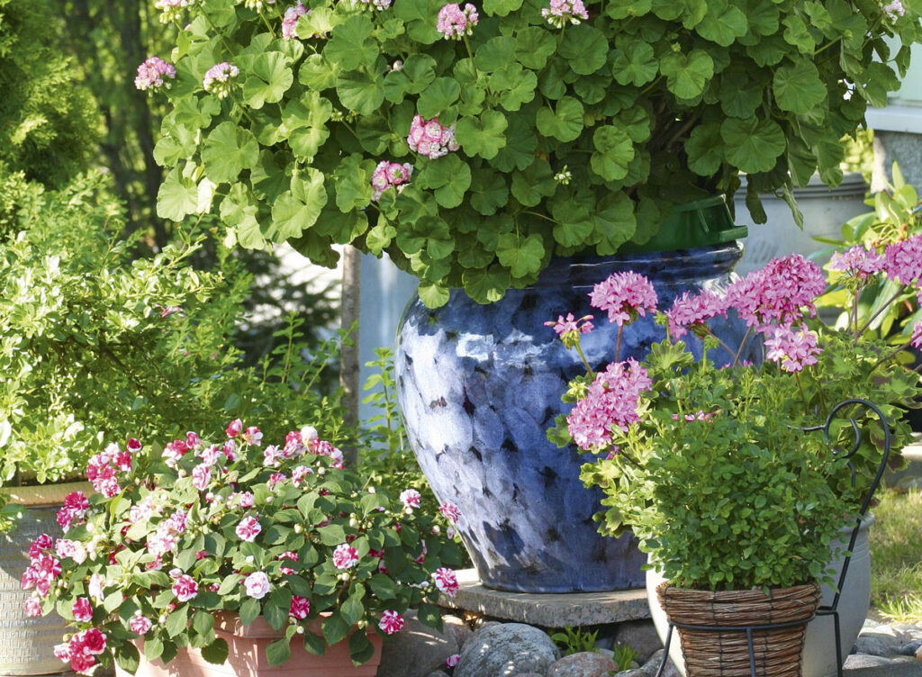 2. Omanlainen ruukkutarha voi syntyä hetken mielijohteesta tai tarkan suunnittelun tuloksena. Ruukkuihin voi rakentaa vaikkapa kerroksia. 3. Begonia viihtyy vanhassa pihagrillissä, jossa juuret pysyvät sopivan viileässä. 4. Suuressa betoniastiassa mahtuu kasvamaan kokonainen kukkatarha. Hyvä piharuukku on reilun kokoinen, jolloin helteelläkin riittää kastelu kerran päivässä.5. Kallioisilla paikoilla ruukkutarhaan valitaan kuivuutta sietäviä lajeja, kuten maksaruohoja (Sedum), mehitähtiä (Sempervivum), marunaa (Artemisia) ja ajuruohoja (Thymus).