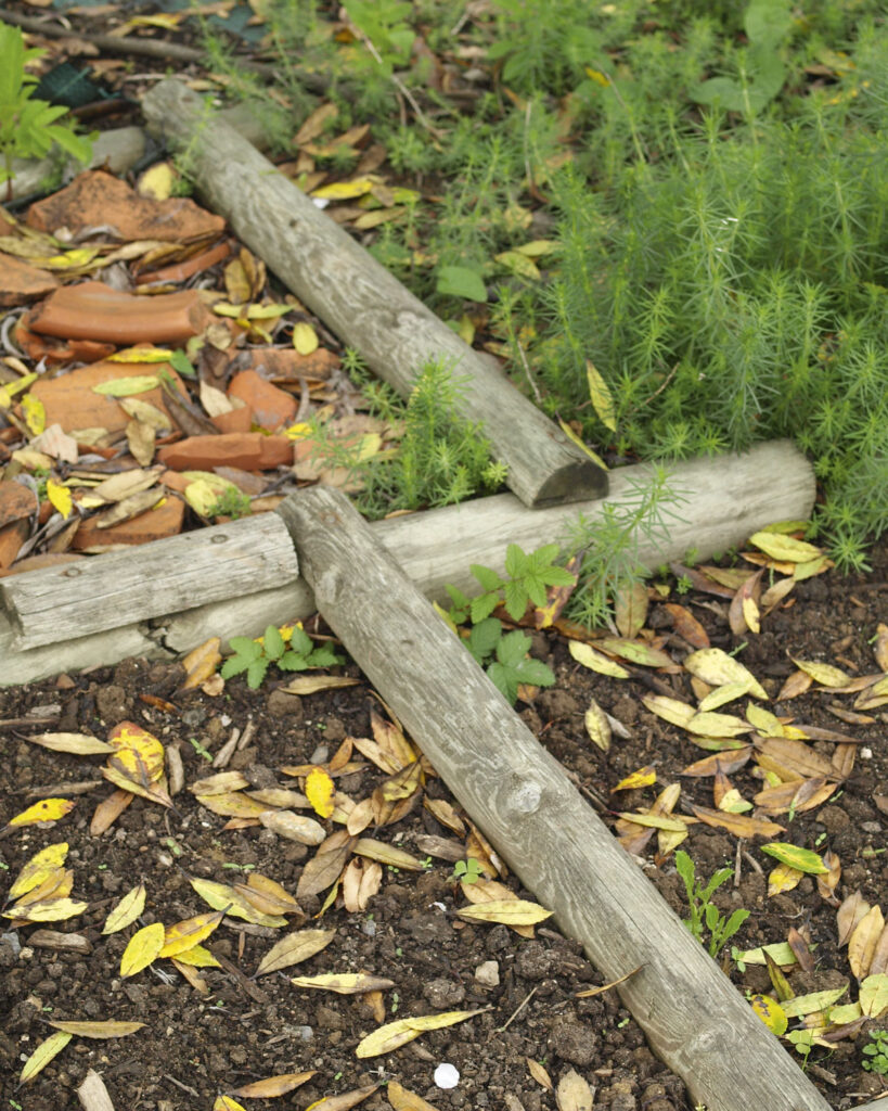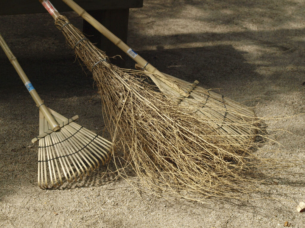 Muovi on löytänyt tiensä myös työkaluihin, mutta perinteisiäkin materiaaleja on yhä tarjolla. Kun kirveen puuvarsi katkeaa, sen voi vaihtaa. Puinen haravanvarsi tuntuu kädessä hyvältä ja kevyet metallipiikit taipuvat luontevasti – haravoinnin äänikin on kaunis! Harjana toimii risuluuta. Japanilaista puutarhaa hoidetaan bambusta valmistetuilla haravilla ja haroilla, muu ei tulisi kuuloonkaan.