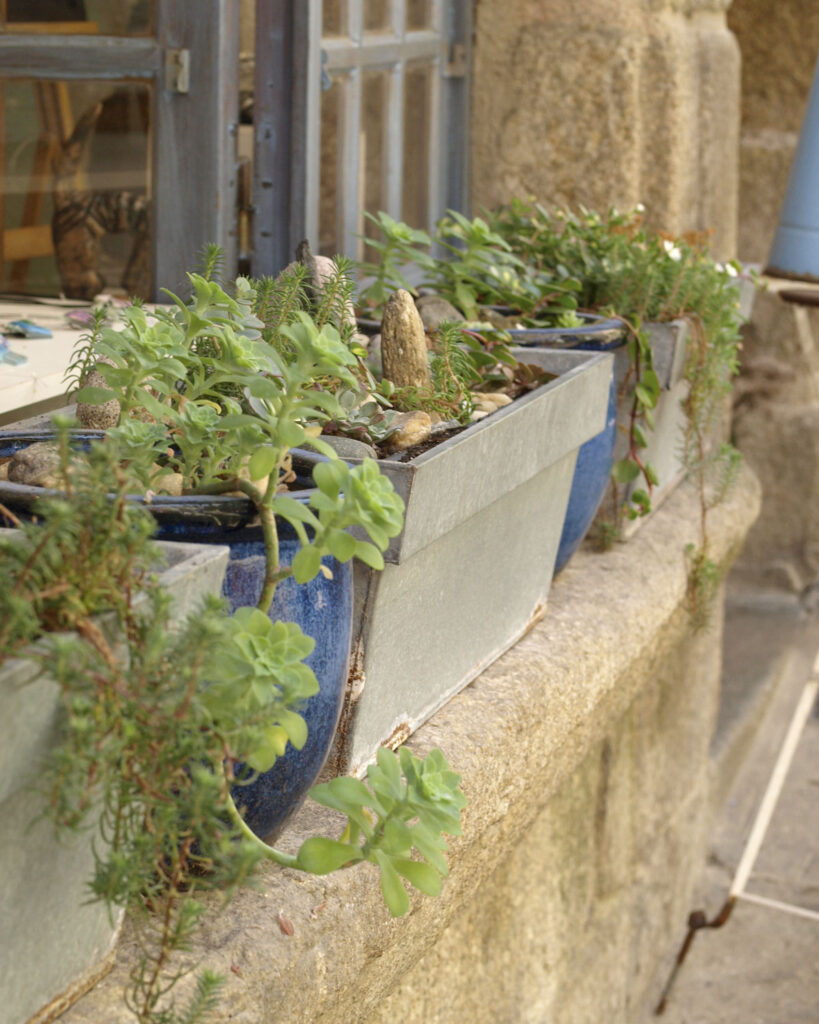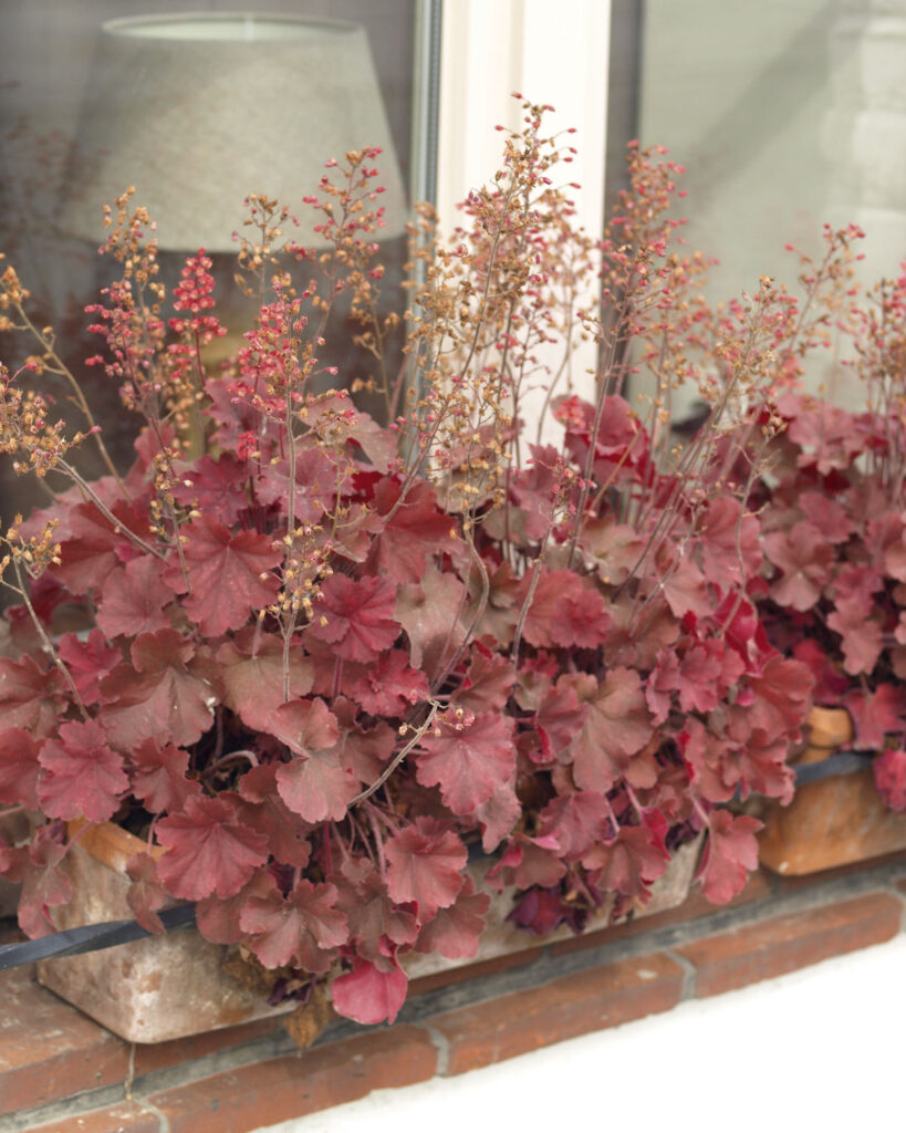 Parvekkeen kaiteelle ja ikkunalaudoille sijoitetut kukka-astiat voivat aivan hyvin olla keraamisia, sinkkisiä tai puisia. Punasaviset parvekelaatikot sointuvat tiilitalon verhoukseen, kun taas puiset istutusastiat tuovat syksyiselle puuterassille tšehovilaista tunnelmaa rönsyilevine muratteineen.