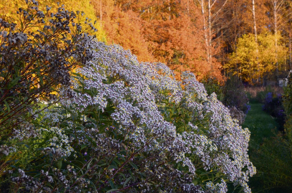 Syksyt ovat nykyään pitkiä ja lauhoja. Välillä saattaa olla kylmä viikko, vähän luntakin, sitten plusasteinen sää taas jatkuu. Etelä-Suomessa lokakuu on kelvollinen, toisinaan jopa mainio asterien kukintakuukausi. Pohjoisempana saman voinee sanoa syyskuusta. Istuta puutarhan aurinkopaikoille astereita ja muita syyskukkijoita, sillä ne ilahduttavat valtavasti. Syksyn viileydessä kukinnat kestävät viikkokausia.
