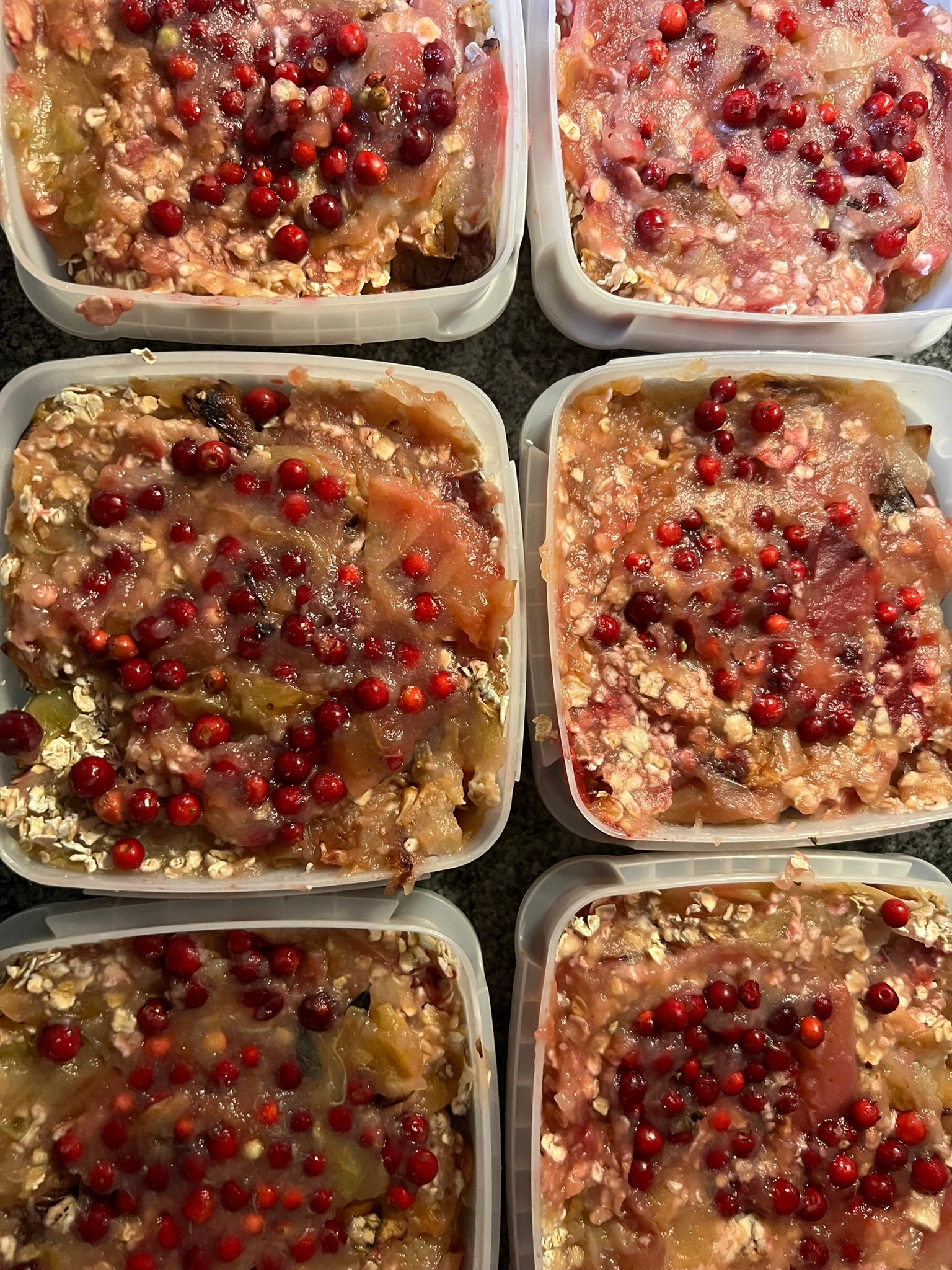 Äppel, havregryn och lingon fryses in i lagom små portioner för att blandas i i hundens råfoder.