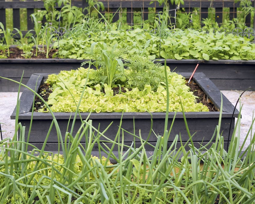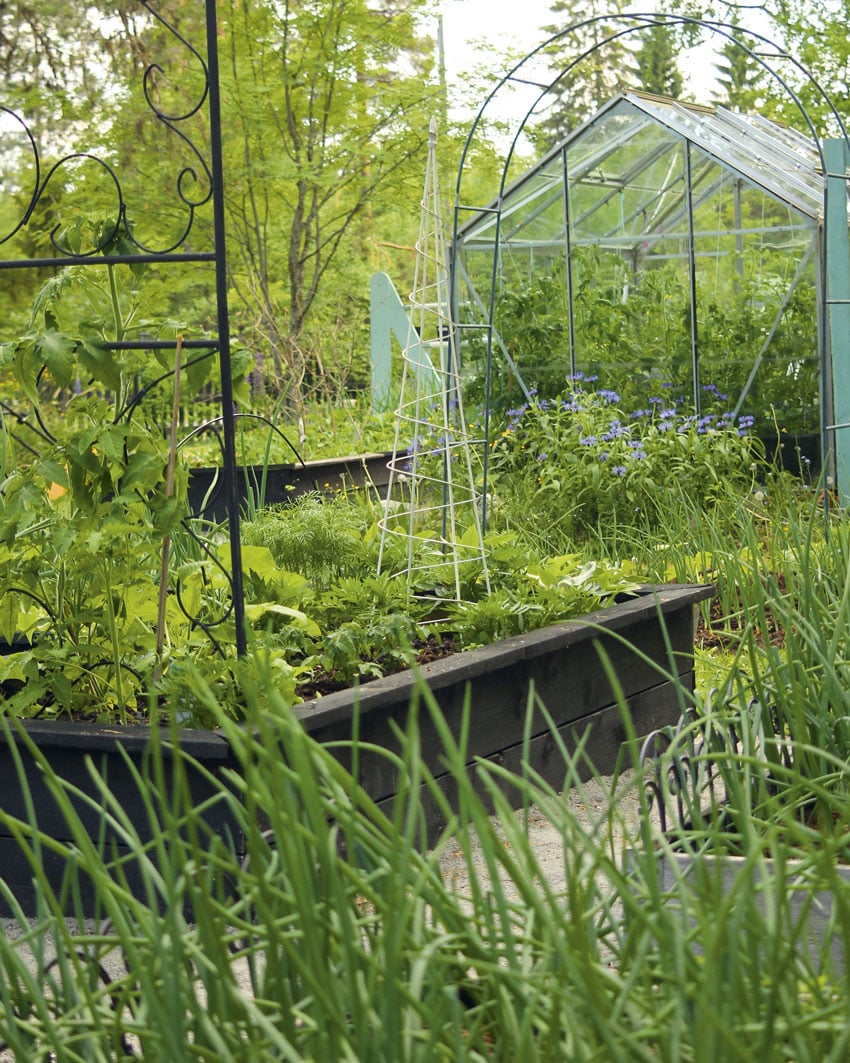 Tuoretta syötävää tuottava lavatarha on helppohoitoinen ja kaunis. Kasvukauden alkupuoli sujuu rennosti omavaraisena ainakin perunoiden, sipulien, yrttien ja salaattien osalta. Tomaatit ja kurkut vahvistuvat kasvihuoneessa ja alkavat kukkia.
