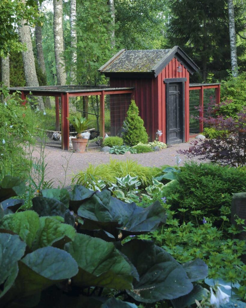 Tämän kokoisella pihalla ovat tarpeen myös alueet, joihin sijoitetaan kompostit, uudet taimikasvatukset ja heräteostokset, joilla täytetään aukkopaikkoja tai joiden sijoitusta vielä pohditaan. Nämä toiminnot ovat vähän sivummalla. Kanala on soma rakennus, joka erottaa hoidetumpaa aluetta puolivillistä metsänreunasta.