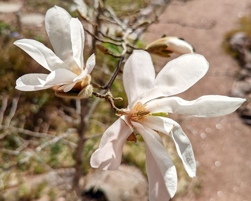 Muutamat puuvartiset kasvit, kuten näsiä, onnenpensaat, koristekirsikat ja magnoliat, kukkivat ennen lehtien kasvua. Näiden kukkien tuoma kontrasti heräävässä puutarhassa on näyttävä ja aistikokemuksena vahva.