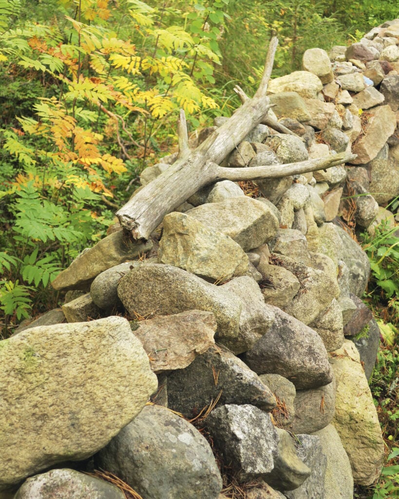 Meitä oli jo vuosien ajan vaivannut pihalla kiemurteleva ja epämääräinen, mutta omalla tavallaan hellyttävä kivimuodostelma. Se könötti tontin rajalla kylätien laidassa ja muistutti etäisesti aitaa olematta sellainen. Päätimme ryhdistää rykelmän katsetta kestäväksi kiviaidaksi.