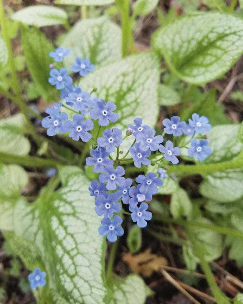 Rotkolemmikki (Brunnera macrophylla) hurmaa upeilla lehdillä ja kukkii pienin vaaleansinisin kukin.