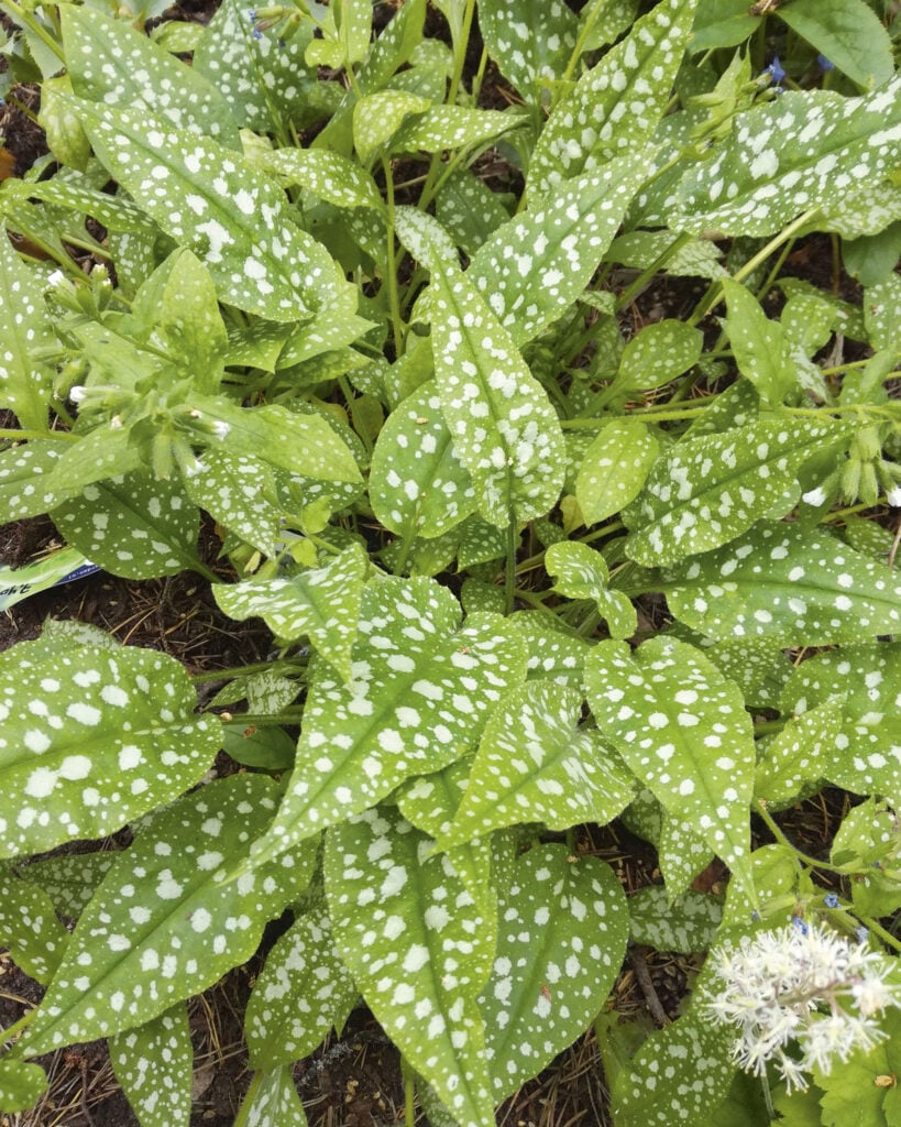 Valkotäpläimikästä (Pulmonaria saccharata) on lukuisia lajikkeita. Kukkien väri vaihtelee vaalean- ja liilanpunaisesta ruusunpunaiseen ja puhtaan valkoiseen.