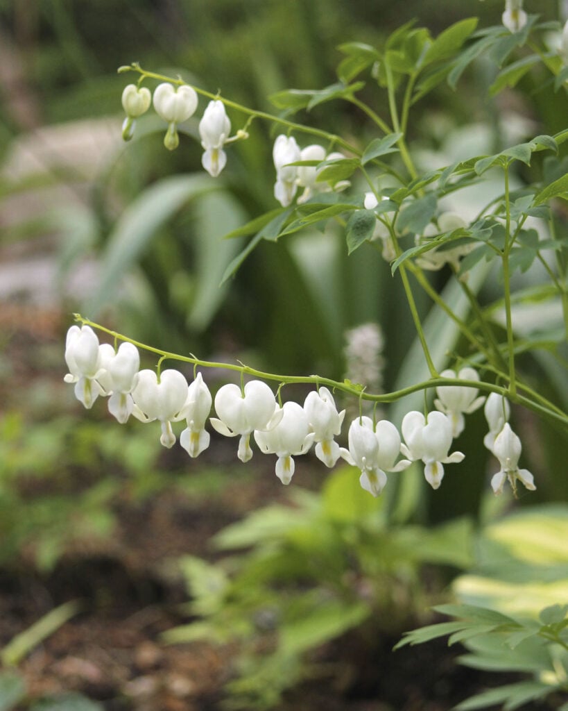 Valkokukkainen särkynytsydän (Lamprocapnos spectabilis ’Alba’) sopii puolivarjoon rehevien lehtiperennojen kaveriksi. Kasvupaikka saa olla suojaisa, maa ravinteista ja hieman kosteutta pidättävää. Happaman maan kasveille voi antaa keväällä lannoitteeksi pari kourallista käytettyjä kahvinporoja.