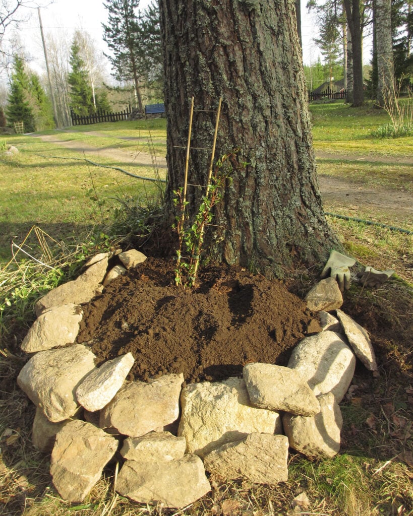 Tee rajoja. Kasaa pihalta löytyvät lohkareet kiviaidoiksi erottamaan metsäaluetta ja puutarhan hoidetumpaa osaa. Kiviaidan kolot ovat hyviä ötököiden talvehtimispaikkoja. Voit rajata alueita myös istuttamalla tontilta mahdollisesti löytyviä pieniä kuusentaimia leikattavaksi kuusiaidaksi. Se tuo pihalle huoliteltua ilmettä myös talvella.