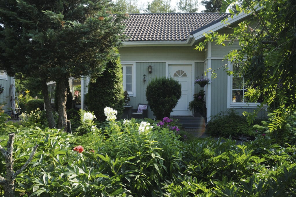 – Naapuri kaatoi metsän, sitten alkoi kasitien humina kuulua ja läheinen tuulivoimala tuli näkyviin, mutta vastapainoksi takapihamme kylpee nyt valossa koko päivän iltaa myöten, Jussi pohtii. – Pihassamme on mukavasti eri paikkoja eri vuorokaudenajoille.