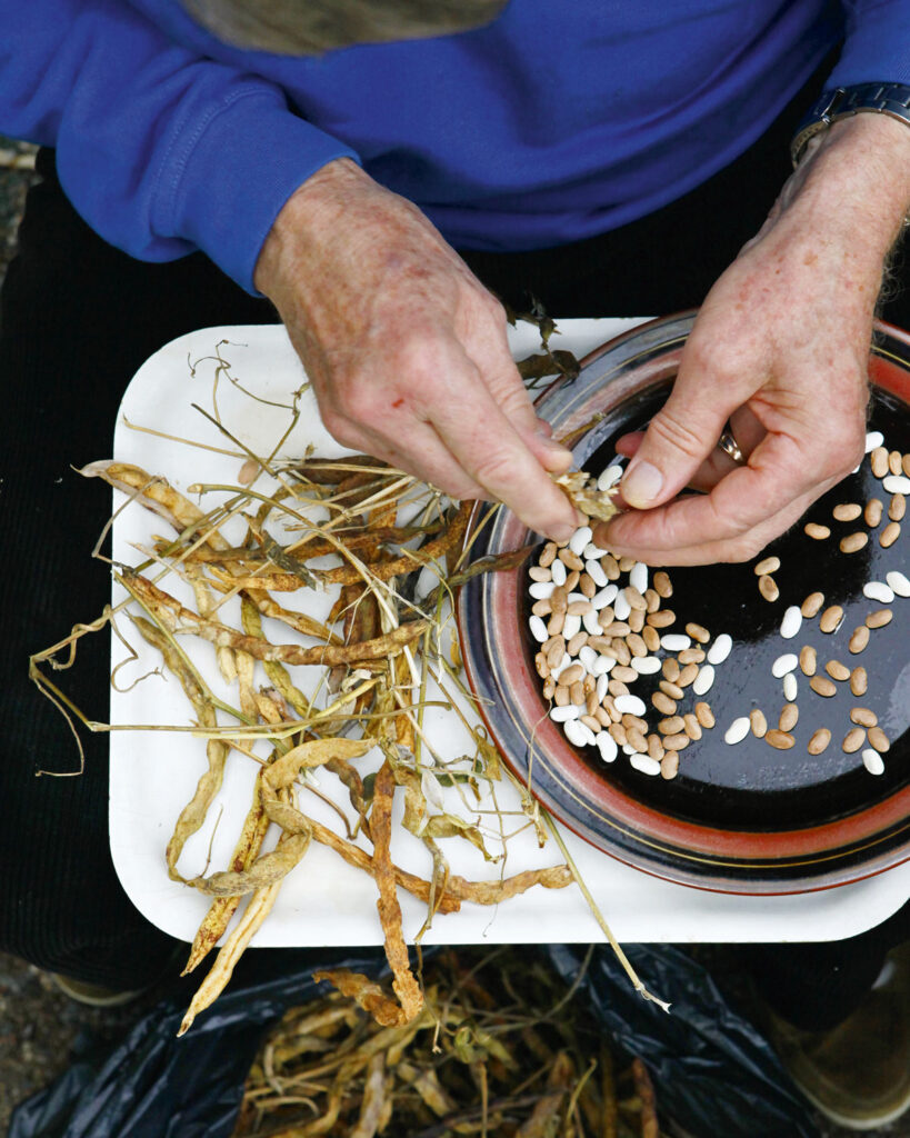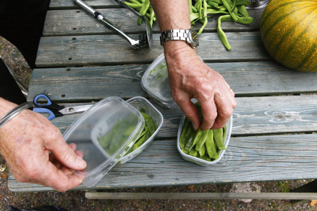 Kuva Saila RoutioKuivatuista pavunpaloista irrotetaan pavut säilytykseen ja talven ruokavarastoon.