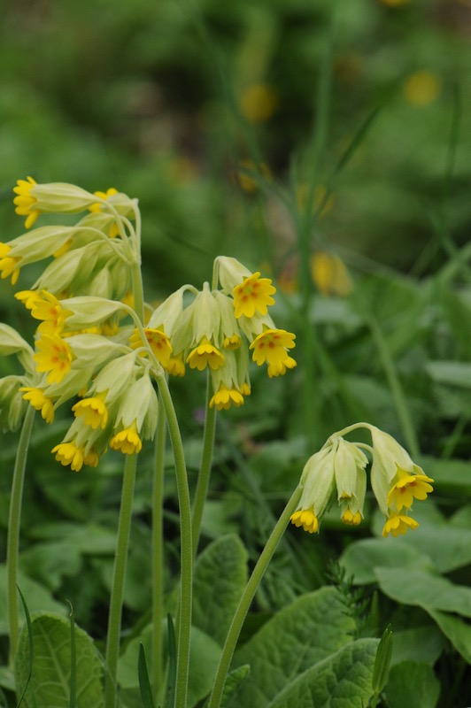 Kevätesikot (Primula veris) ovat tulleet kukkaan. Tässä niitä kasvaa luonnostaan, olen lisäillyt niille kaveriksi narsisseja, keltavuokkoa, jouluruusuja ja varjoliljoja.