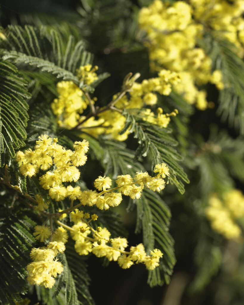 Osa mimosista eli hopea-akaasioista (Acacia dealbata) on isoja, vankkarunkoisia puita, osa taas on kuin risuista pajukkoa, joka nyt kukkii ja levittää miellyttävää tuoksua ympärilleen. Vaikka Australiasta kotoisin oleva mimosa on eksoottinen ilmestys Bretagnessa, ei niihin kesällä kiinnitä juurikaan huomiota. Talvinen kukinta onkin mimosan juhlahetki.