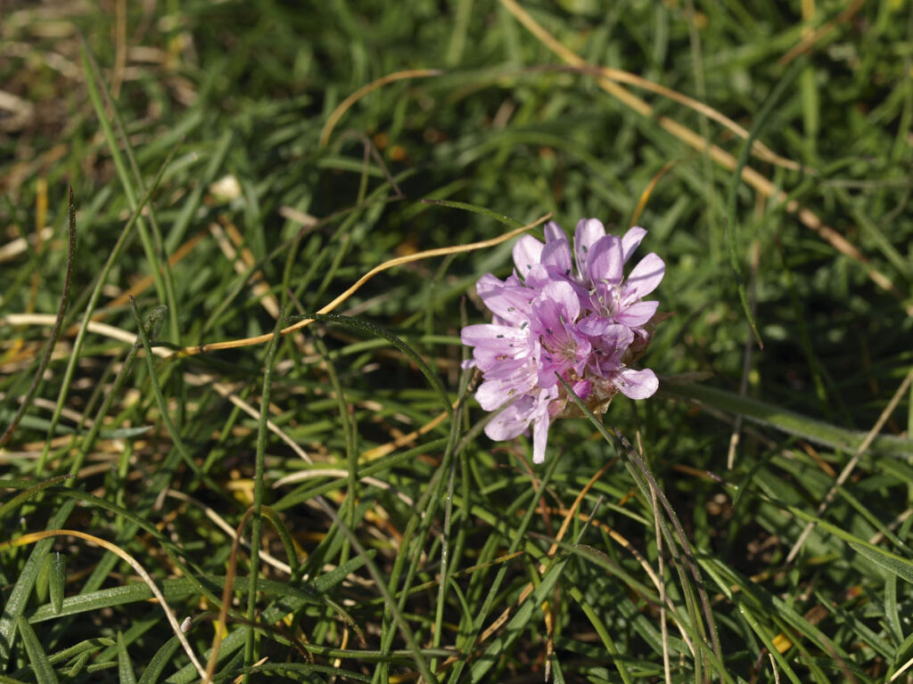 Merenrantakallioita peittää vihreä kasvillisuus. Pikkiriikkiset valkoiset kukat kuuluvat tanskankuirimoille (Cochlearia danica), jotka nimestään huolimatta ovat tyypillisiä kasveja Bretagnen rannikoilla. Niiden lisäksi merituulia uhmaavat sirot vaaleanpunaiset laukkaneilikat (Armeria maritima).