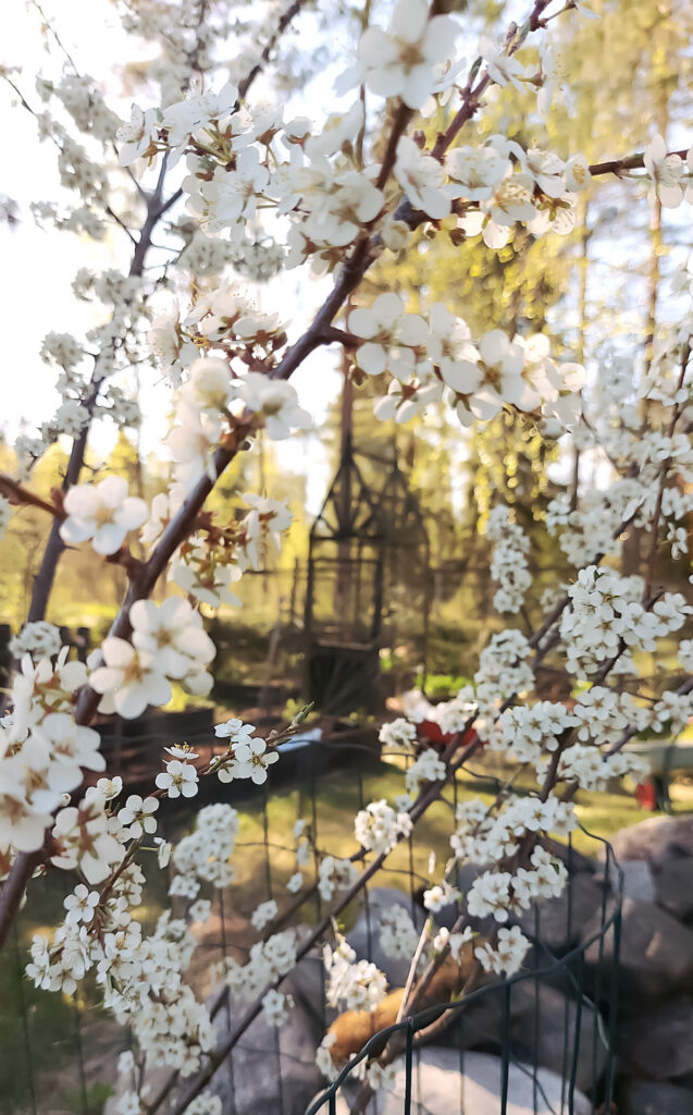 Keväisistä kukkivista puista kirsikkaluumu (Prunus cerasifera) on pihallani kaikkein aikaisin – ja myös odotetuin – kukkija. Kukkien loisto on lämpiminä päivinä melko nopeasti ohi, joten puun vierellä tulee vietettyä aikaa ihan vain katsellessa ja nuuhkiessa. Kirsikkaluumusta kantautuu aurinkoisena päivänä vahvasti makea, hieman tuomenkukkia muistuttava tuoksu.