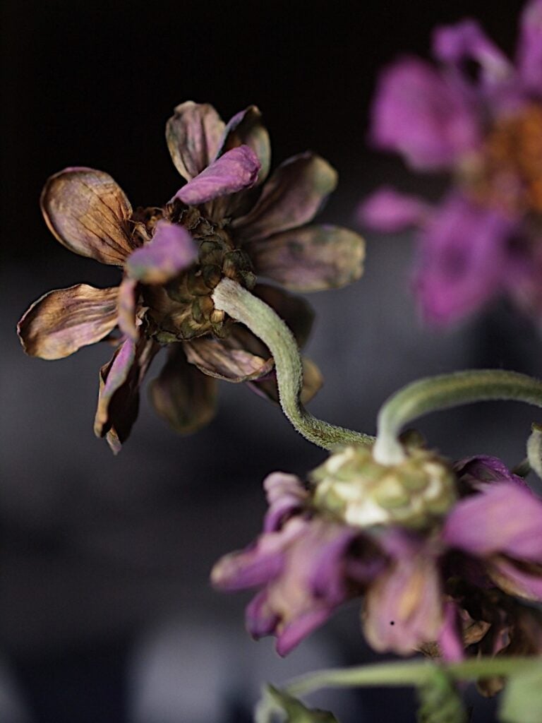 Kasvin kauneus ei lopu kukintaan. Kuihtuessa värit haalistuvat tai syvenevät, muodot muuttuvat, materia haurastuu. Sitä on kiehtova seurata.