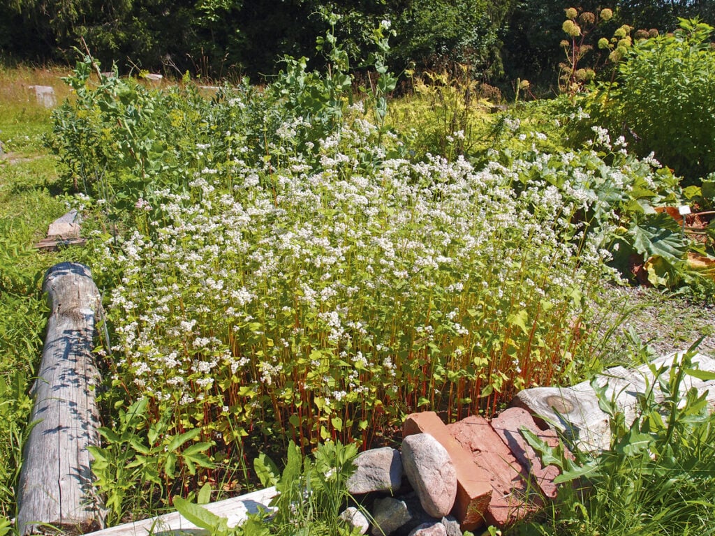 – Luonto tarjoilee Ragvaldsissa kattauksen kasveja maaperän siemenpankista, Reetta kuvaa. – Kasveja tulee ja menee kulttuuriniittyjen tapaan. Kaksivuotisista tulikukista on kasvitarhassa jatkuvasti esillä sekä lehtiruusuke- että kukkivia vaiheita, samoin täällä viihtyy muinaistulokas pölkkyruoho. Kasviston monimuotoisuus on suojannut puutarhaa etana- ja kauristuhoilta, kun mitään lajia ei syödä kokonaan pois, hän jatkaa.