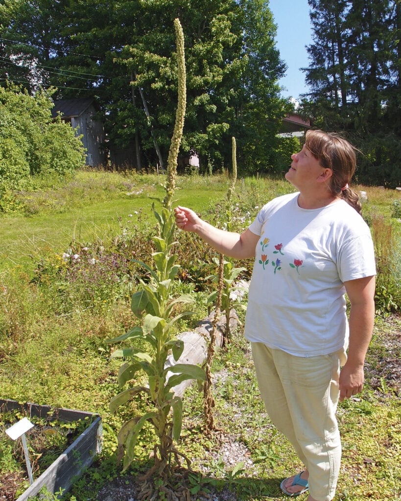 – Minulle kuuluu Ragvaldsissa vanhan kasviston ylläpitäminen, vaikka teen myös muita museotöitä, Reetta Kandolin kertoo. – Pohjana sille, mitä täällä on ollut tarkoitus kasvaa, toimii opetustarhan aikoinaan suunnitelleen Pekka Borgin kasvilista. Tasapainotan kasvien välisiä määräsuhteita ajoittaisilla kitkennöillä. Leikin ikään kuin laiduntavaa lammasta valikoimalla vähennettäviä kasveja, hän nauraa.