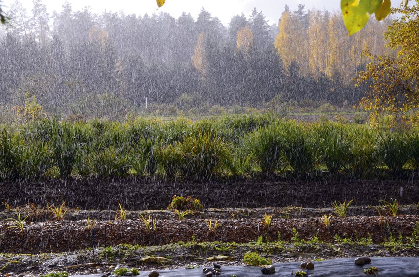 Sitten vain odotellaan ja pidetään pientä hermopeliä talventulon kanssa. Yleensä Etelä-Suomessa päästään näin vähintään lokakuun lopulle, jopa reilusti marraskuun puolelle. Välillä voi tulla kylmiä päiviä ja sataa luntakin, mutta maa ei lehtikerroksen alla hevin jäädy, ei edes kohmetu. Vasta kun lämpötila alkaa olla yötä päivää miinuksella, otetaan talikko esiin ja kaivetaan juurakot turvaan.
