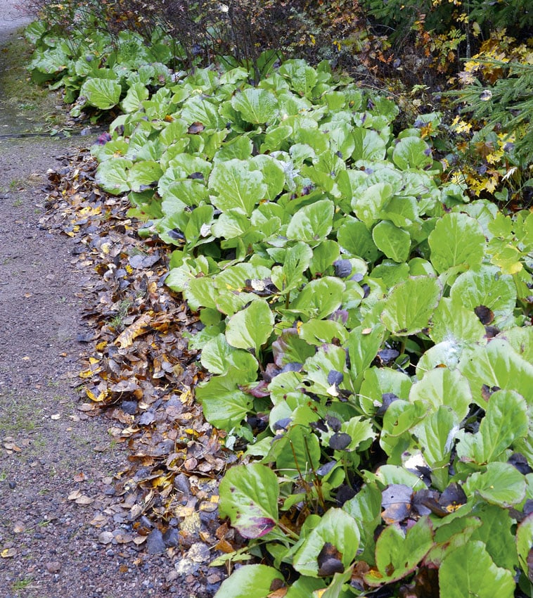 Kukkapenkkejä lehdillä kattaessa täytyy muistaa, että hennot kevätsipulikukat eivät jaksa pinnistää ylös paksun ja hangen alla liiskaantuvan lehtikerroksen alta. Suuret vaahteranlehdet ovat tässä suhteessa hankalimmat. Ne kannattaa haravoida ja ajaa ruohonleikkurilla silpuksi. Silppu kelpaa sitten penkkeihin.