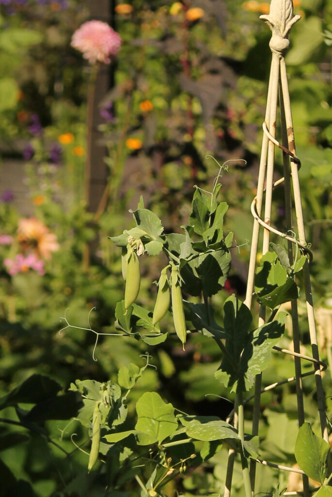 Tänä kesänä ei ole herneitä tarvinnut torilta ostaa, sillä satoa on saanut pihalla rouskutella päivittäin.