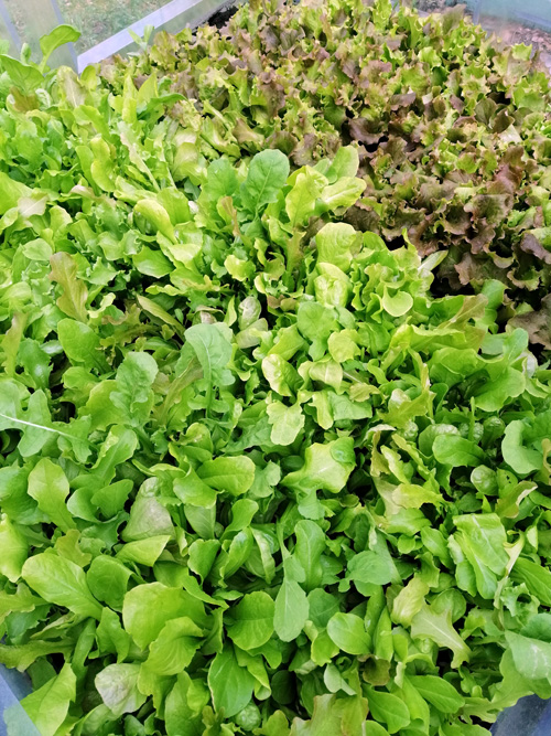 Muovisin ”minikasvihuonein” katettu, aurinkoisella paikalla oleva matala lava lämpenee keväällä nopeasti ja tuottaa satoa jo kovaa vauhtia. Kestävä rakennelma on palvellut tarkoituksessaan jo kymmenisen vuotta. Vain puuosa on kerran vaihdettu, sillä aluksi sokkelin/lavan lauta oli käsittelemätöntä puuta. Nyt puuosat on sivelty myrkyttömällä mustalla puuöljyllä. Huhtikuun lopulla kylvetyt siemenet ja niistä kehittyneet pikkutaimet kestivät hyvin myös toukokuun alun takatalven ja yöpakkaset. Kannen alla on hyvä turva lumisateilta ja siellä säilyy optimaalinen kosteus, joka takaa sen että salaatista ei tule kitkerää eivätkä retiisit halkeile epätasaisen kastelun vuoksi. Vastaavan rakennelman voi tehdä myös kierrätysmateriaaleista, vaikkapa vanhoja ikkunoita hyödyntämällä.