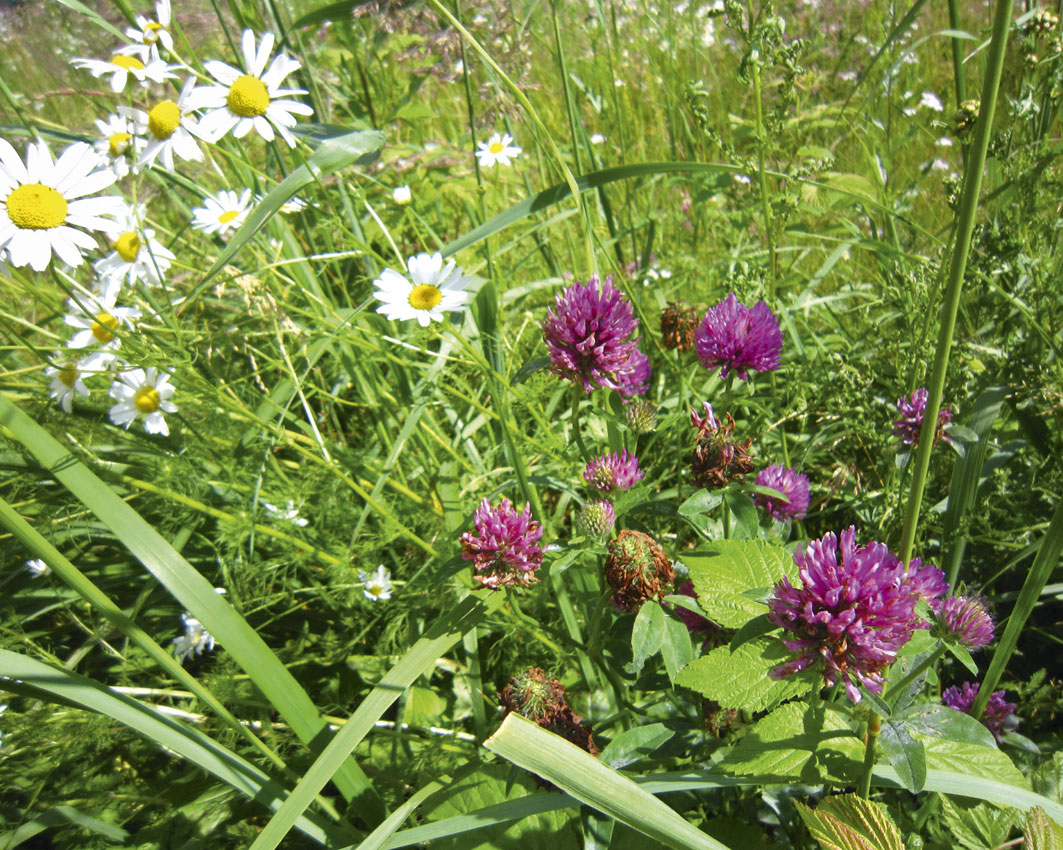 Poimulehtikasvusto on täynnä terveyttä ja elinvoimaisia kesän värejä.