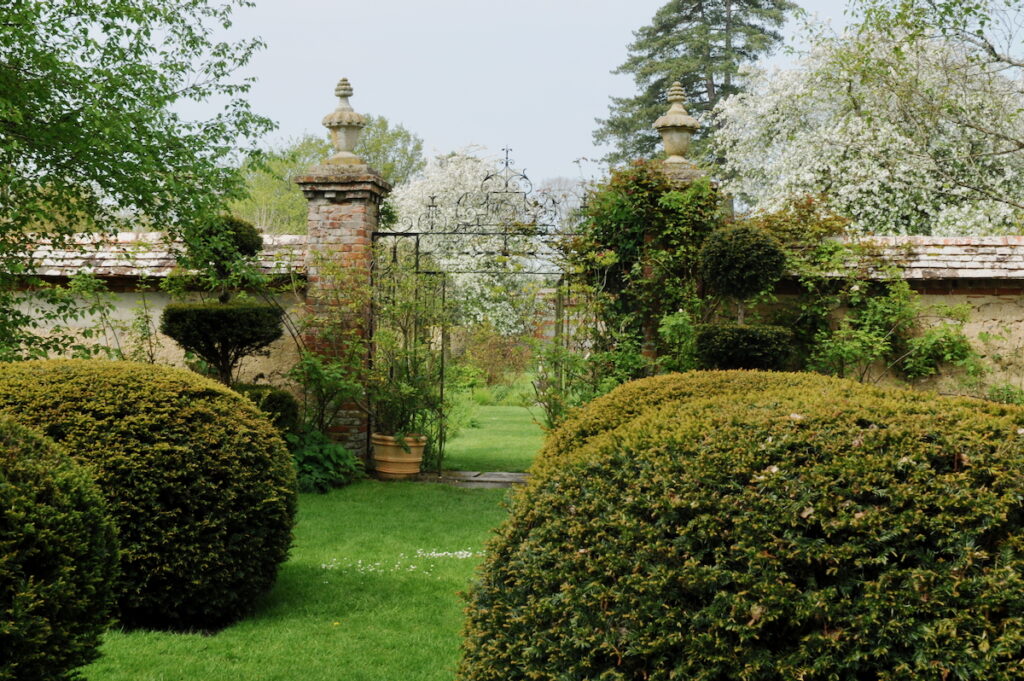 Keittiöpuutarhan hedelmäpuutunneleiden omena- ja päärynäpuut ovat viehättävästi sammaloituneet. Tässä luonnonmukaisesti hoidetussa puutarhassa ei kuvitella, että sammalen tai jäkälän posto hedelmäpuiden rungoista olisi mitenkään tarpeellista. Niin kuin se ei olekaan.Yksi keittiöpuutarhan neljästä lohkosta on nurmella ja sieltä löytyy perinteinen kukkapenkki. Kasvimaan kukkapenkissä kukkivat tarhakurjenmiekat (Iris Germanica-Ryhmä) ja kultalakat (Erysimum), jotka ovat Englannissa perennoja. Suuret harmaanvihreät lehdet kuuluvat latva-artisokalle (Cynara).Nurmikentän poikki avautuu näkymä kohti ristin muotoon istutettuja omena- ja päärynäpuutunneleita sekä puksipuupallojen ympäröimää vesiaihetta. Puksipuut ovat kasvaneet niin kookkaiksi, ettei lammesta näy mitään – tässä puutarhassa on hurmaavaa salaisen puutarhan tuntua.Tämän kuvan oli taittaja valinnut juttuun, mutta se joutui väistymään toisen, tärkeämmän kuvan tieltä. Tässä on kyllä kaunis keväinen valo ja kiinnostava yksityiskohta. Kasvimaan nurkan pieni tiilestä ja piikivestä rakennettu vaja edustaa paikallista rakennusperinnettä: piikiveä löytyy sieltä, missä on kalkkikiveäkin. Alhaalla kirkasvetisen joen rantaniityillä on kiinnostavia kasveja. Magnoliat ovat toukokuussa kukinnan lopulla ja jo puhkeamassa lehteen, mutta tämä yksi pensas oli vielä upeasti kukassa. Mustarastas niityllä kertoo puutarhan kauniista luonnonmukaisuudesta enemmän kuin tuhat sanaa. Kuningassaniainen (Osmunda regalis) on parimetriseksi kasvava, komea saniainen. Toukokuussa se on vasta kohoamassa korkeuksiin, mutta voiman näkee jo nyt.Jättigunnera (Gunnera manicata) kukoistaa jokirannassa. Japanilainen Nikko-silta ja teehuone pilkottavat taustalla.Joen toisella puolella laiduntavat läikikkäät jacob-rotuiset lampaat. Rotu on satoja vuosia vanha. Muinais- ja maatiaisrotuja käytetään paljon maisemanhoidossa.Talon edustalla on Harold Peton suunnittelemat muotopuutarhaterassit leikattuine marjakuusineen ja valkopyökkeineen (Carpinus betulus). Täällä kasvaa vanhanajan myskiruusuja. Riikinkukko kuuluu jokaiseen englantilaiseen kartanoon.Lasiovien edessä on viehättävän villi laatoitus – tyyli on tarkoituksellinen sekä esteettisesti että luonnonmukaisuuden kannalta. Sinisateet (Wisteria) on ohjattu kasvamaan päivänvarjon mallisiksi rautatukien avulla.Taas siirrytään salaisesta puutarhan huoneesta toiseen. Tämä puutarha on täynnä yllätyksiä ja uusia näkymiä!Vanhat niin kutsutut Lutyens-penkit täydentävät ajatonta tunnelmaa. Heale Garden on rikkumattoman rauhan tyyssija ja aikakin tuntuu pysähtyneen.Muodikkaat koristeheinä–koristelaukkapenkit valkotuohisten kivikoivujen (Betula ermanii) alla edustavat puutarhatrendien nykyaikaisinta suuntausta. Luonnollinen lähestymistapa – täysin myrkytön puutarhanhoito sekä luonnonkukkaniityt – on myös aallonharjaa, samalla siitä on tullut puutarhan kestotrendi. Lännenhopeapensaat (Elaeagnus commutata) rytmittävät niittyä ja tuovat siihen vaihtelevaa sävyä.
