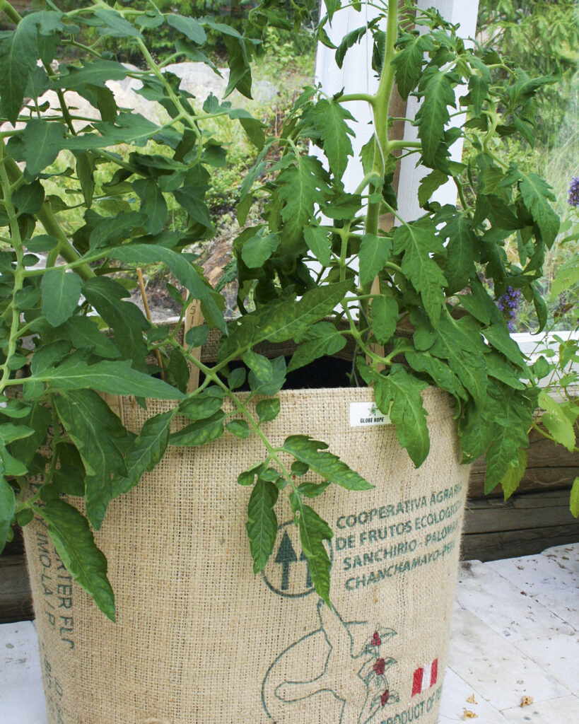 Istutusastian voi kätkeä hauskan kangassäkin suojaan.