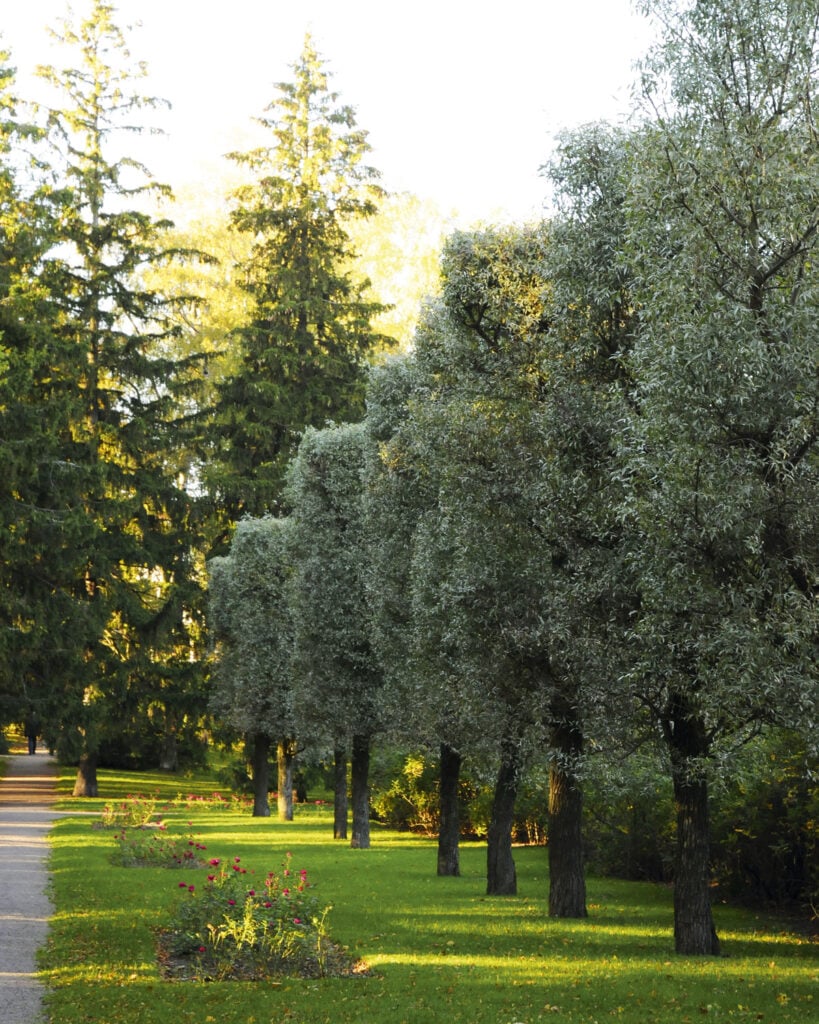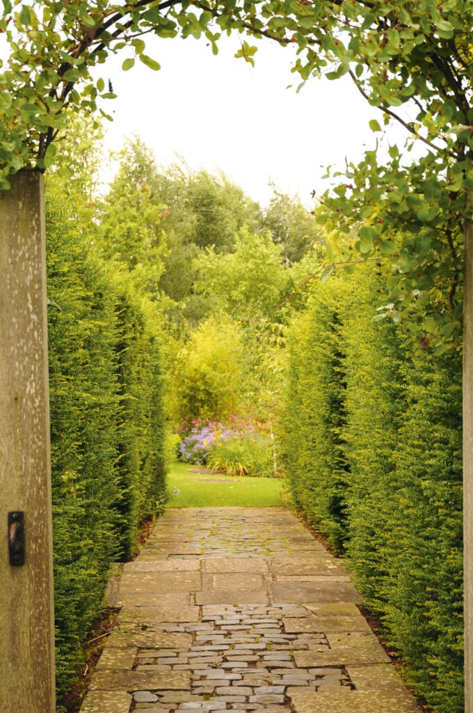 Korkeiksi kasvavista lajeista, kuten puista ja aitaorapihlajasta (Crataegus grayana), syntyy myös kaariportti keskelle aitaa.