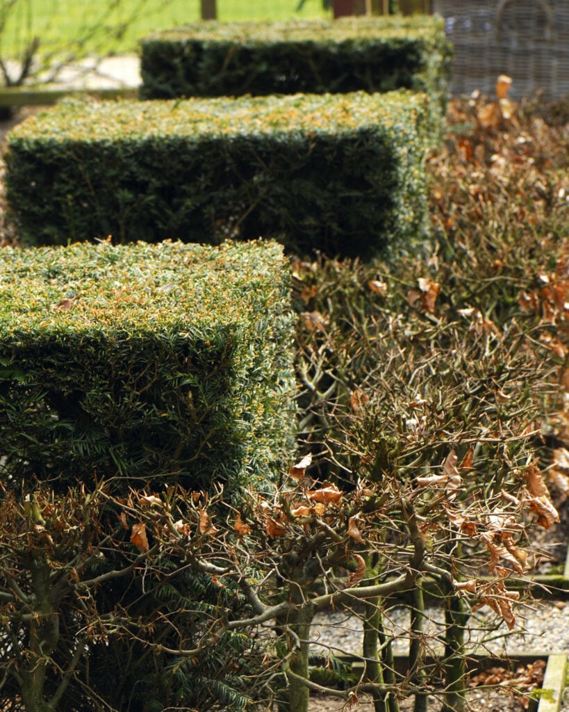 Aidan ei tarvitse olla ainavihanta tuodakseen puutarhaan talvista kauneutta. Lehdettömät, ruskeanharmaat, hieman siiliä muistuttavat ja tiheiksi leikatut pikku aidat ja kasvipatsaat ovat kauniita, kun ne vain osaa nähdä niin.