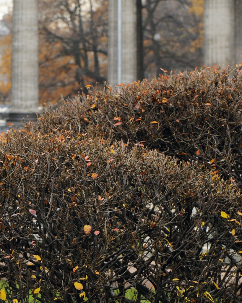 Talvikaudella puutarha näyttää risuiselta ja resuiselta, kun kaikki lakastuu. Leikattujen muotokasvien ja aitojen ansiosta ryhti säilyy, vaikka kukat ja lehdet kuihtuvat. Oikeastaan talvella muodot vasta pääsevätkin kunnolla esiin.