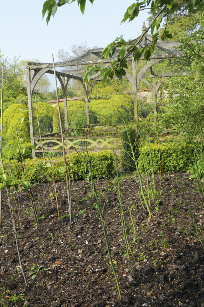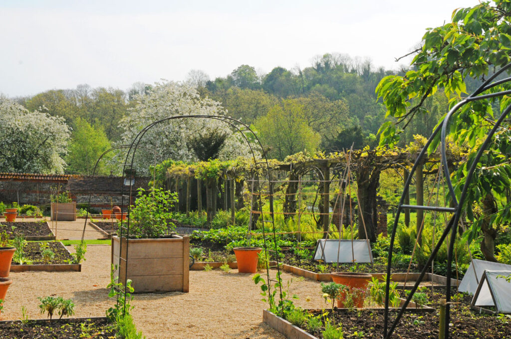 Keittiöpuutarha tuottaa perheelle lähes kaikki vihannekset, kuten jo vuosisatoja sitten. Korkea kivimuuri tarhan länsi-, pohjois- ja itäpuolella luo suojaisan pienilmaston. Se on perinteisten muurien tarkoituskin samalla kun ne pitävät kauriit ja muut eläimet ulkopuolella. Laaja hyötytarha on jaettu neljään osaan omena- ja päärynäpuutunneleilla, jotka halkovat alueen ristin muodossa. Keskellä on pikkuinen lampi, jota ympäröivät pallon muotoon leikatut puksipuut – mutta ne ovat kasvaneet niin valtaviksi, että allasta tuskin näkyy.