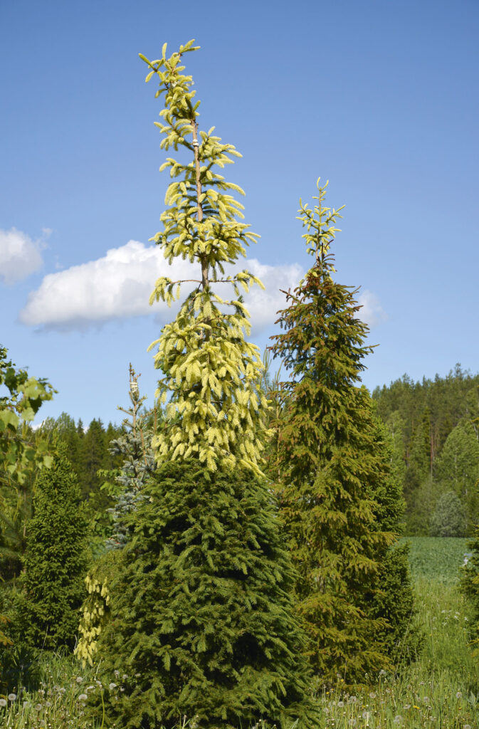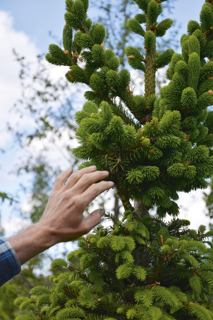 Hän suositteleekin kotipuutarhureille kestäviä kotimaisia havukantoja, sillä niissäkin riittää valinnanvaraa. Tai jos valikoima uhkaa loppua, voi ottaa luovuuden käyttöön, niin kuin Pekka Rantanen tekee. Hän esimerkiksi järkeilee kuusiaidan perustamista näin.