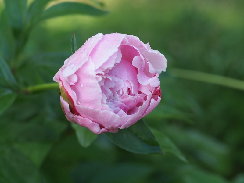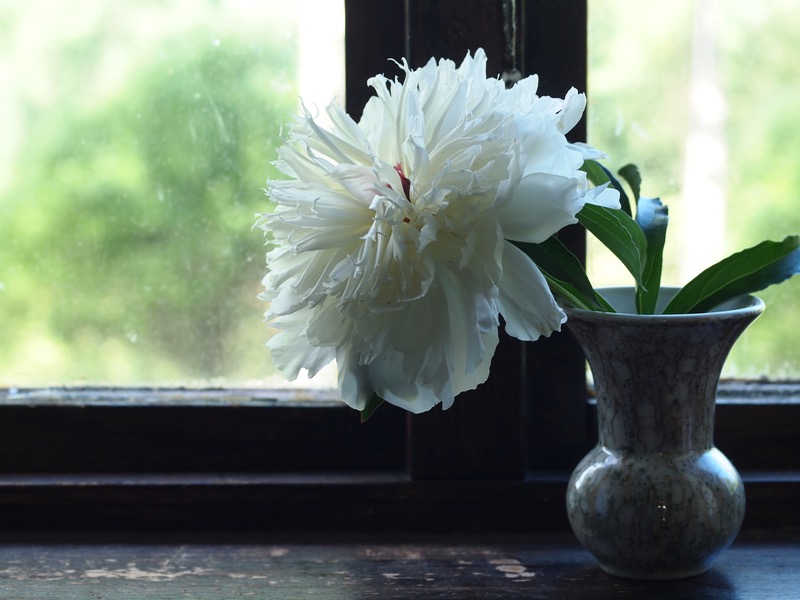 Sateet riepottelivat vanhan pihan pioneja. Pullein niistä ravisteli terälehtiään ja taivutti raskaita kukkiaan maahan asti, muut pistivät kukkansa suppuun ja odottelivat rajuilmojen väistyvän. Nyt aurinko taas paistaa ja pionit (ja niiden emäntä) katselevat että mitenkäs tästä selvittiin. Ihan hyvin.