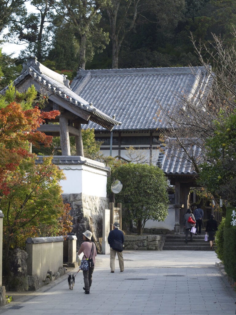 Kadun päässä olevan temppelin tunnistaa valkoisen kivimuurin takaa kurkistelevista suipoista, koristelluista kattorakennelmista sekä komeasta puuportista. Kōmyōzenji-temppelillä on kunnioitettavat seitsemänsataa vuotta takanaan, sen perusti Sugawaran aatelissukuun kuulunut buddhalaismunkki Tetsugyū Enshin vuonna 1273. Etupihan taidokas hiekkapuutarha tuo mieleen Kioton kuuluisat kuivat puutarhat, eikä mielikuva ole aivan väärä, sillä temppelin perustanut munkki oli kiotolaisen Tōfukuji-temppelin oppilas.