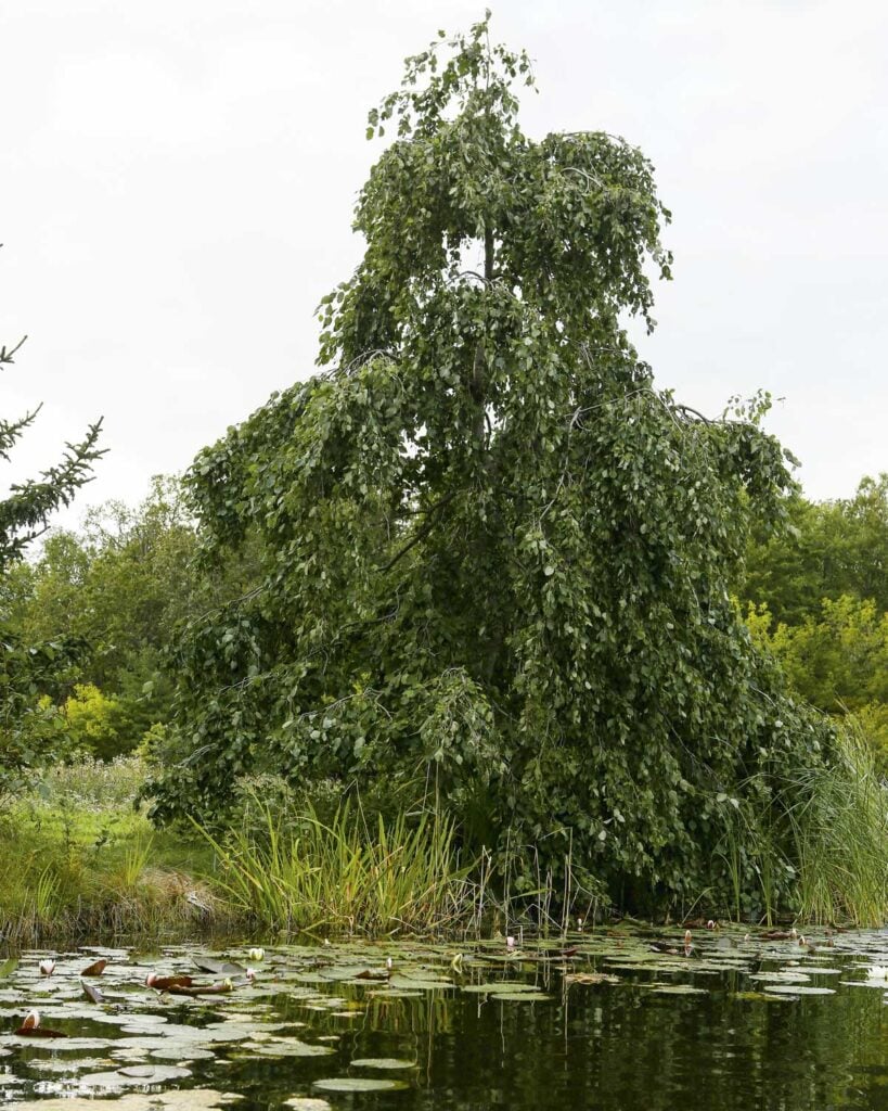 Sama riippaleppä on kesäaikaan kaunis ilmestys veden äärelläNuori riippaleppä on jalonnettu korkealle perusrungolle.