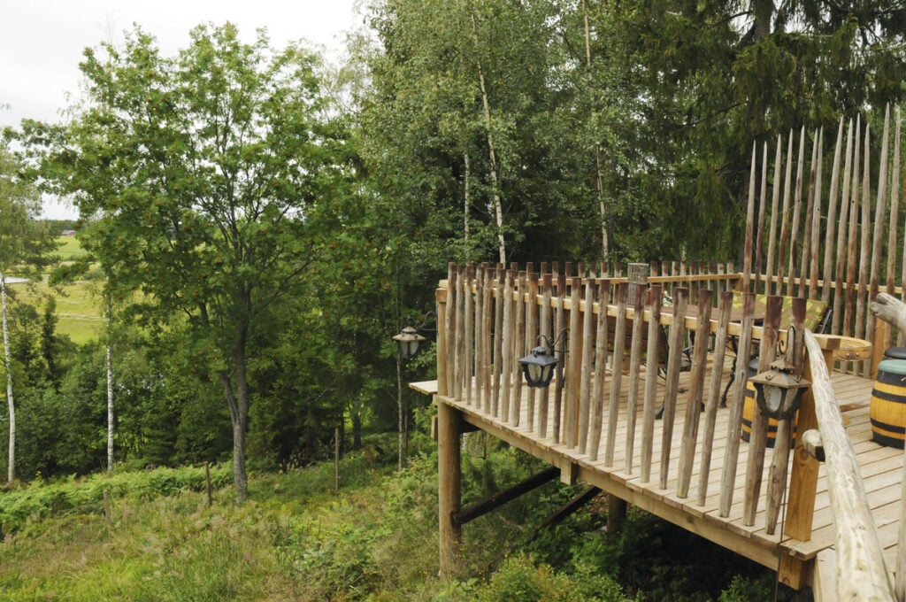 Rinteeseen rakentaminen vaatii korkeita tolppia. Böckermanien rouhea näköalaterassi on tehty jokilaaksoon avautuvan maiseman äärelle.