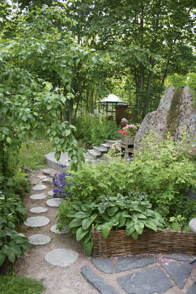 Siirtolohkareet ovat vaikuttavia tilanjakajia ja antavat vahvan suojan salaiselle puutarhalle.