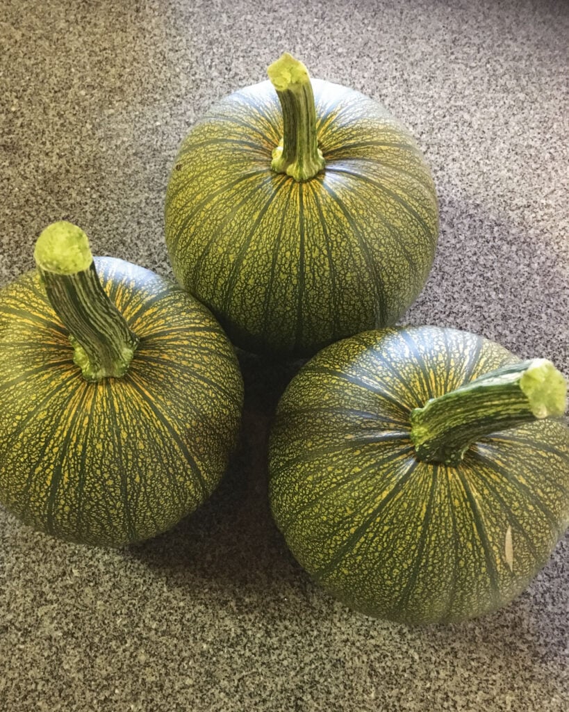Öljysiemenkurpitsa ’Retzer Gold’ on ensin vihreä, mutta muuttuu kypsyessään keltaiseksi ja lopuksi oranssiksi. Tämä kurpitsa on päätynyt papumaahan.