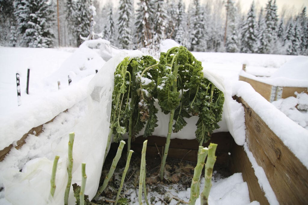 Vasta kun on ollut useita pakkas- ja lämpöjaksoja, alkaa lehtikaalin sadonkorjuu olla ohi. Lehtikaalia voi myös kuivata ja se on hyvä lisä varsinkin sianlihapataan. Pihlajan- ja aronianmarjat ovat parhaimmillaan muutaman pakkasyön jälkeen, mutta nälkäinen lintuparvi voi viedä marjat, jos poimija odottaa liian kauan.