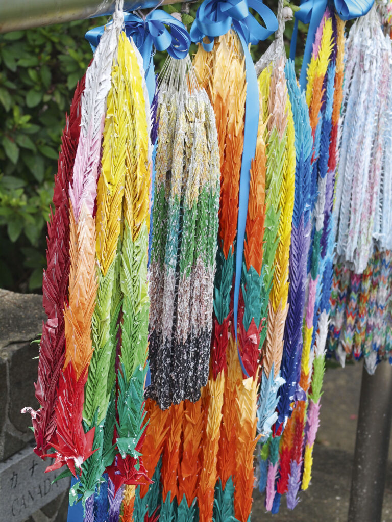 Sielunkellojen kumahtelu johdattaa edelleen lapsiuhrien muistomerkille, jota kiertävät värikkäät origamikurkien kranssit. Ne muistuttavat 12-vuotiaana leukemiaan kuolleen Sadako Sasakin tarinasta.