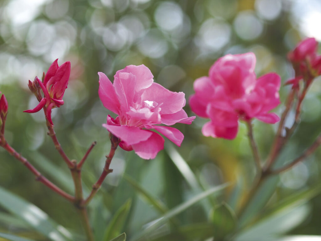 Oleanterit kukkivat heinäkuussa Nagasakin rauhanpuistossa. Hyposentripuiston äiti ja lapsi -patsas muistuttaa, ettei Nagasaki ollut varsinaisesti sotilaskohde ja että suurin osa uhreista oli naisia, lapsia ja vanhuksia. Nagasakin rauhanpatsaan kohotettu käsi muistuttaa ydinaseiden vaaroista, suoristettu käsi symboloi ikuista rauhaa ja suljetut silmät rukousta kuolleiden sielujen puolesta. Nagasakin rauhanpuiston maailmanrauhan alue on saanut lahjoituksia eri puolilta maailmaa. Kuuban teos kuvaa ihmisiä rauhan auringon alla.Patsaspuistoalue on miellyttävän vehreä ja rauhallinen. Näyttävin kukkaloisto löytyy Nagasakin rauhanpuiston portaiden keskeltä. Mustavalkokuva Nagasakin tuhosta atomipommin jälkeen osoittaa tuhon laajuuden. Yhtään rakennusta ei ole jäänyt jäljelle, puista vain palaneet rangat.
