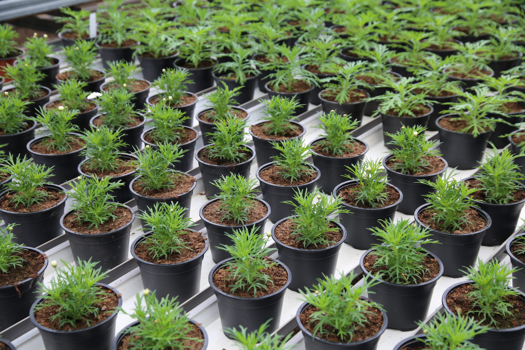 När vi andra kikar efter de första vårblommorna i trädgården är det redan full fart i yrkesträdgårdsodlarnas växthus. Långa rader av snöflinga, pelargon, margerit, alströmeria och andra välkända sommarblommor är planterade för flera veckor sedan. Sommarblommornas allra första blomknoppar har slagit ut men det dröjer ännu två månader eller mer innan plantorna är klara för försäljning och kan planteras ut.