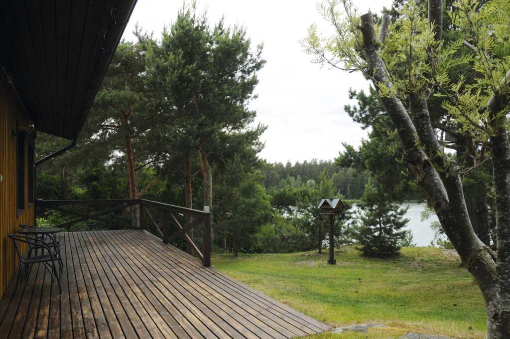 Ove pitää puutöistä. Hänen käsitöitään voi ihailla sekä talossa että pihalla. Talvisin, kun ulkona ei ole tekemistä, syntyy tarve-esine jos toinenkin. Yhtenä erityisen kylmänä talvena syntyi kookas, talon muotoinen lintulauta takapihalle. Täällä, rannan puolella, piha on lähes luonnontilassa ja laskeutuu pienen nurmialueen jälkeen jyrkkinä kallioina mereen. Talon takaseinustalla on suuri terassi kohti ilta-aurinkoa ja merimaisemaa. Lolan synnyinsaari Pensar häämöttää kauempana.