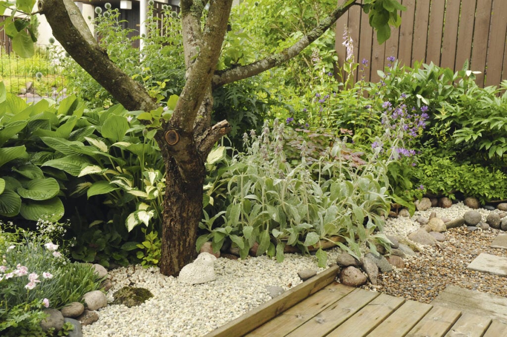 – Tässä oli tontin huonoin maa, niinpä päättelimme puuntaimen kaipaavan syvempää multatilaa ja parempaa ruokamultaa tyvelleen.