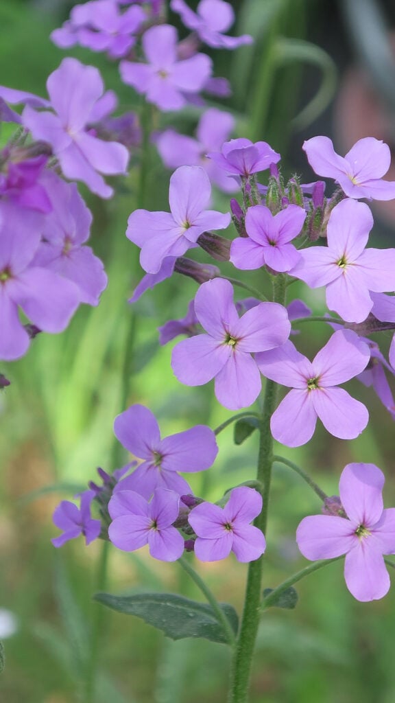 Vanhanajan perinnekasvi illakko (Hesperis matronalis) tuoksuu ihanasti kesäillassa. Se kukkii kylvöstä seuraavana vuotena ja sen kannattaa antaa kylväytyä monivuotiseksi iloksi puutarhaan.