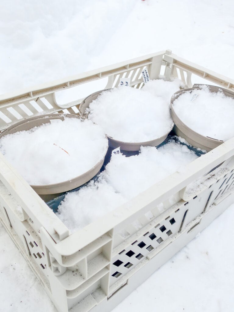Talvikylvöt – kuinka ne onnistuu? Talvikylvöjen kanssa kannattaa muistisääntönä pitää sitä, että kasvit jotka muutenkin luonnossa kylväytyvät itsestään ja alkavat keväällä itää varhain, ovat sellaisia, joita kannattaa myös talvikylvää astioihin ulos ja peitellä ne lumella. Kylvökset on hyvä suojata ulkona verkolla, jotta linnut eivät käy tonkimassa siemeniä. Voit myös viedä kylvökset lumella peiteltyinä lämmittämättömän kasvihuoneen suojaan. Kylvökset on hyvä laittaa esimerkiksi kirkkaaseen, kannelliseen muovilaatikkoon, jota on helppo siirrellä.